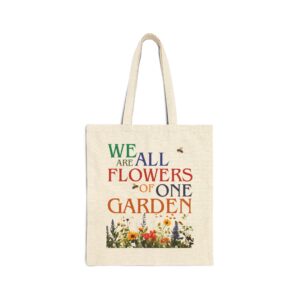 $21.95 – $27.95Price range: $21.95 through $27.95 Select options This product has multiple variants. The options may be chosen on the product pageWe Are All Flowers of One Garden Canvas Tote Bag