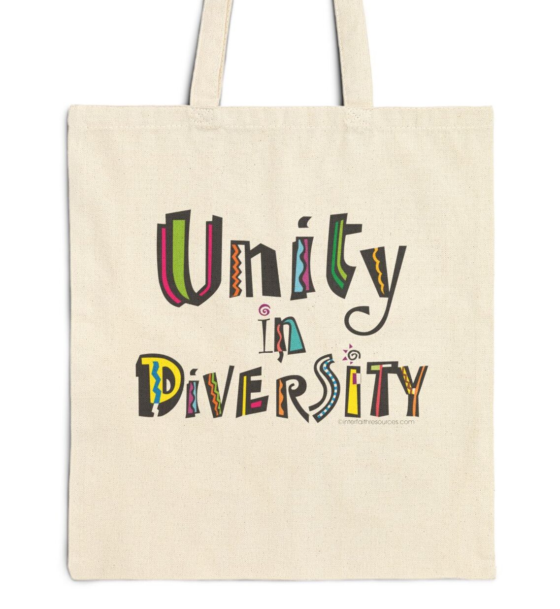 1- Sided Unity in Diversity Cotton Tote Bag in Two Colors