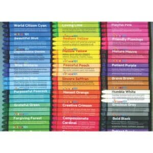 Side one is a picture of our “Color with Character” crayons laid out as a rainbow of color. The picture shows the names of the 24 colors (like Grateful Green, Honest Orange and Compassionate Cardinal), as well as the definitions of the virtues that are written on the crayon wrappers. This makes it a fun way to teach kids the names of important virtues. It can be a subtle conversation starter for children’s classes. Here’s an idea: Have your kids put together the puzzle, then when they are done, pull out the box of crayons. “Wait a minute! How did you do that?”