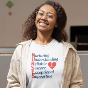 Having just undergone seven weeks of cancer treatment, I can confirm that nurses are all of this and a whole lot more. They are experts at taking care of people who are feeling at their worst and still being Nurturing, Understanding, Reliable, Sincere, Exceptional and Supportive. Give this shirt to an exceptional nurse in your life – even if that’s you!