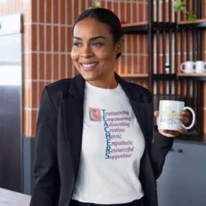 If you know (or are) a good teacher, then tell the world with this beautiful T-shirt. It is something any teacher will be proud to wear, and will remind their students (and parents) just how many wonderful qualities they bring to class every day.