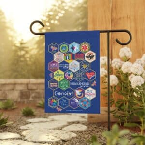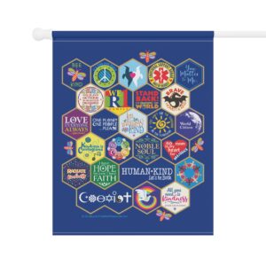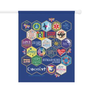 The design incorporates 25 (for the large flag) or 26 (for the garden flag) of our most popular design themes in a honeycomb quilt pattern. This has been extremely popular as a T-shirt and zipper hoodie, where it is printed on the back. These represent just a few of the 100+ unique designs we offer individually on a variety of other products – including other flags. All designs are copyrighted.