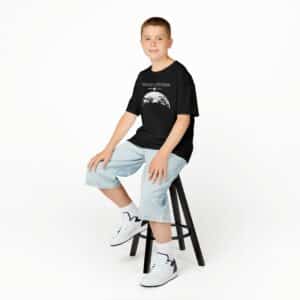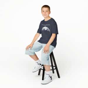 The kids heavy cotton tee is perfect for everyday use. The fabric is 100% cotton for solid colors. Polyester is included for heather-color variants. These fabrics are prime materials for printing. The shoulders have twill tape for improved durability. The collar is curl resistant due to ribbed knitting. There are no seams along the sides.