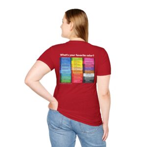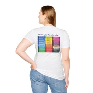 “Color your life with Character” is a great conversation starter. The back of the T-shirt is a picture of our Color with Character crayons, with the question “What is your favorite color?” Everyone who sees it will instinctively look for their favorite color in the picture of crayons, only to discover that it has been renamed after a virtue! The name of the color and a brief definition of the virtue – such as “Forgiving Forest” or “Compassionate Cardinal” – will give them much to think about.