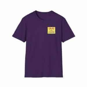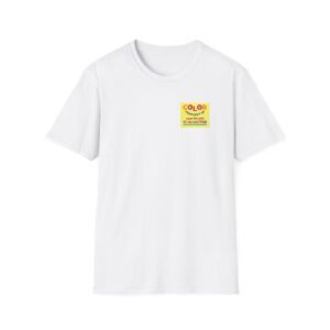 On the front of the Saphire, Coral Silk, Mint Green and Cherry Red is a crayon box with the words “Color your life with Character.” The crayon box is smiling. Since these four colors are two-sided, they costs a little more than the White, Light Blue and Purple shirts. Choose your shirt color accordingly.