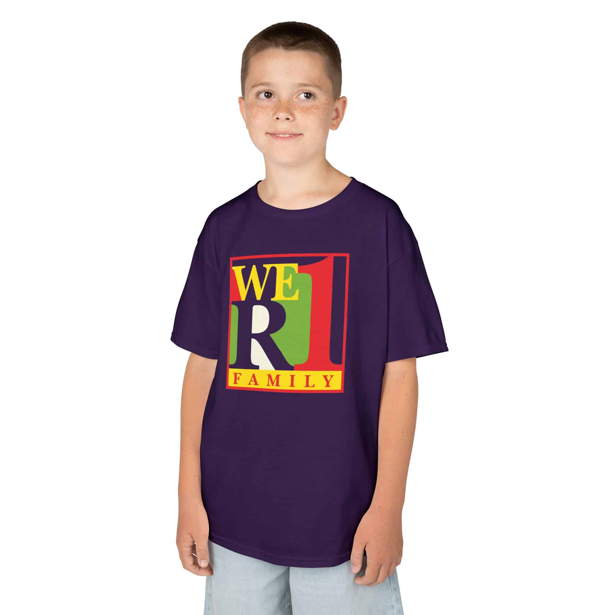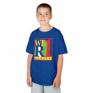 The kids heavy cotton tee is perfect for everyday use. The fabric is 100% cotton for solid colors. The shoulders have twill tape for improved durability. The collar is curl resistant due to ribbed knitting. There are no seams along the sides.