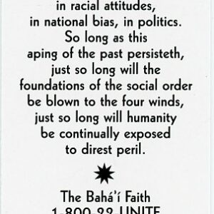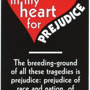 This easy-to-carry version of our best-selling “No room in my heart for prejudice” theme draws a direct connection between prejudice, the chaos of the world, and blind imitation of the past. Give one to anyone interested in any of these three issues.