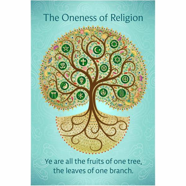 Second, at the bottom is a quotation by Baha’u’llah, “Ye are all the fruits of one tree, the leaves of one branch.”