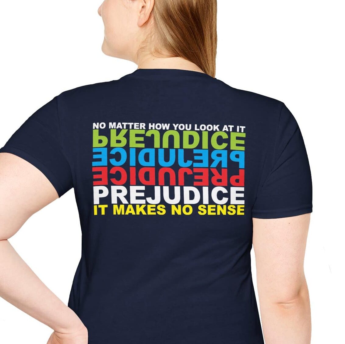 The different color options allow you to hint at different kinds of prejudice, or simply choose your favorite color of shirt and go with it!