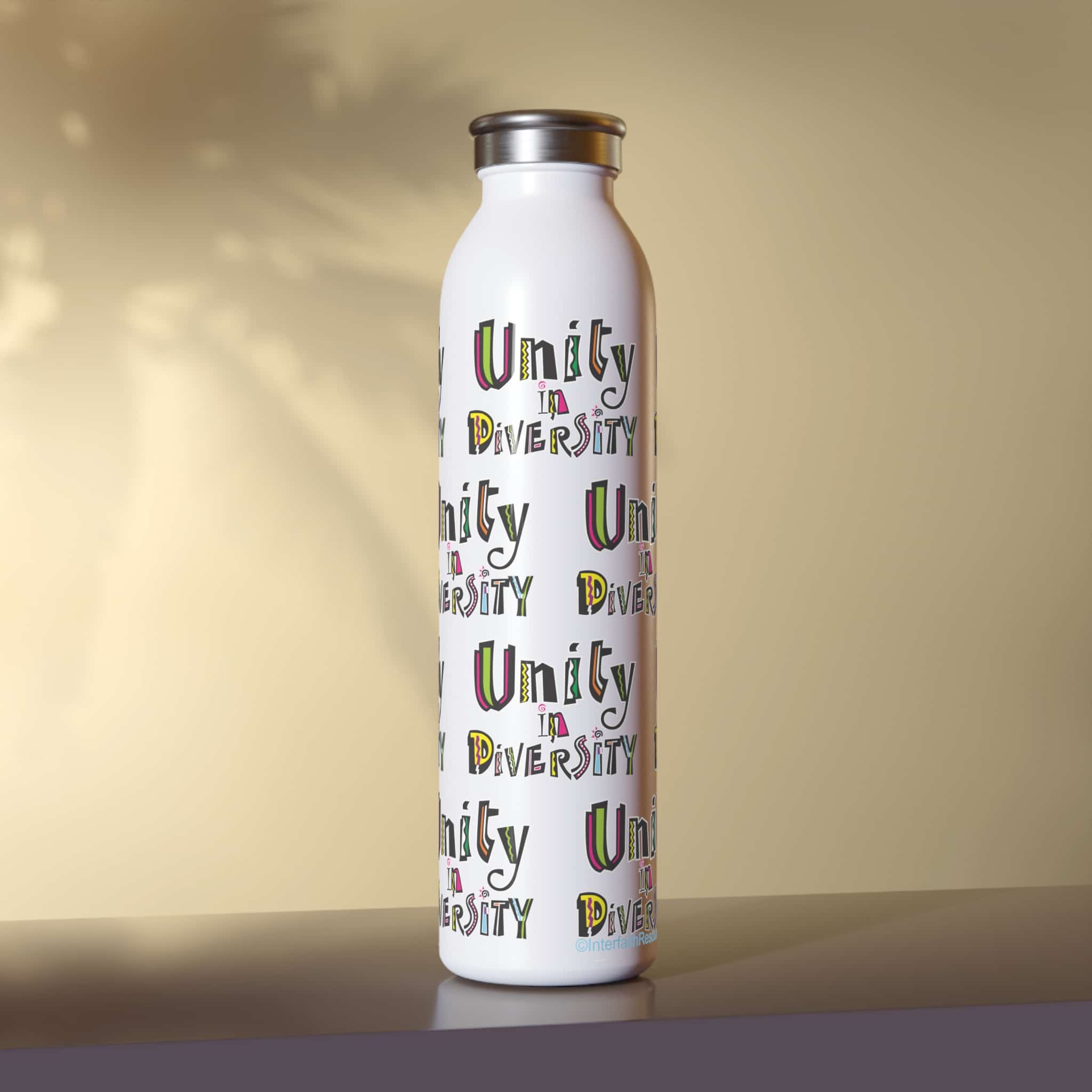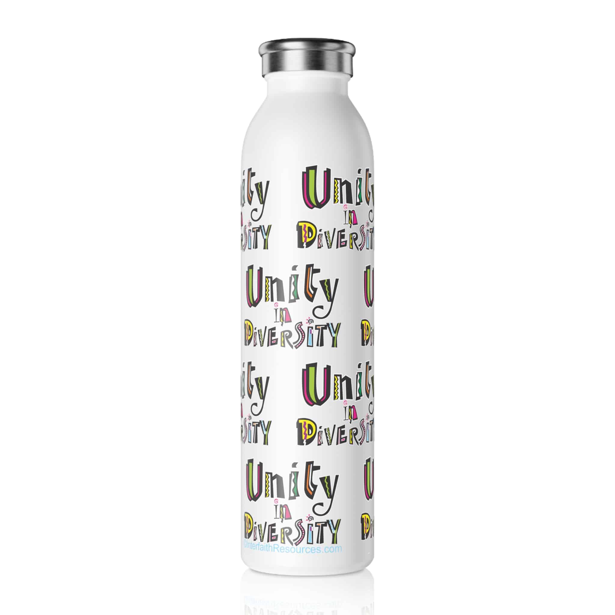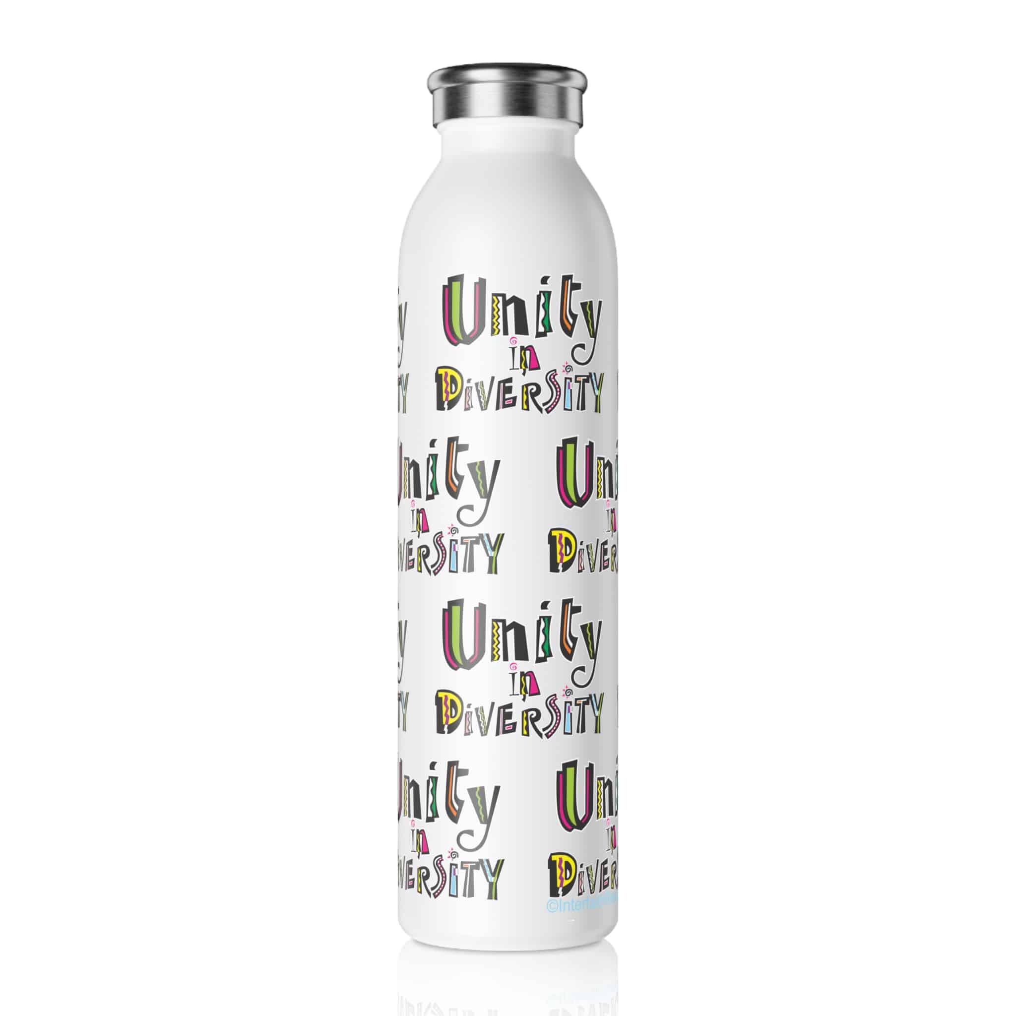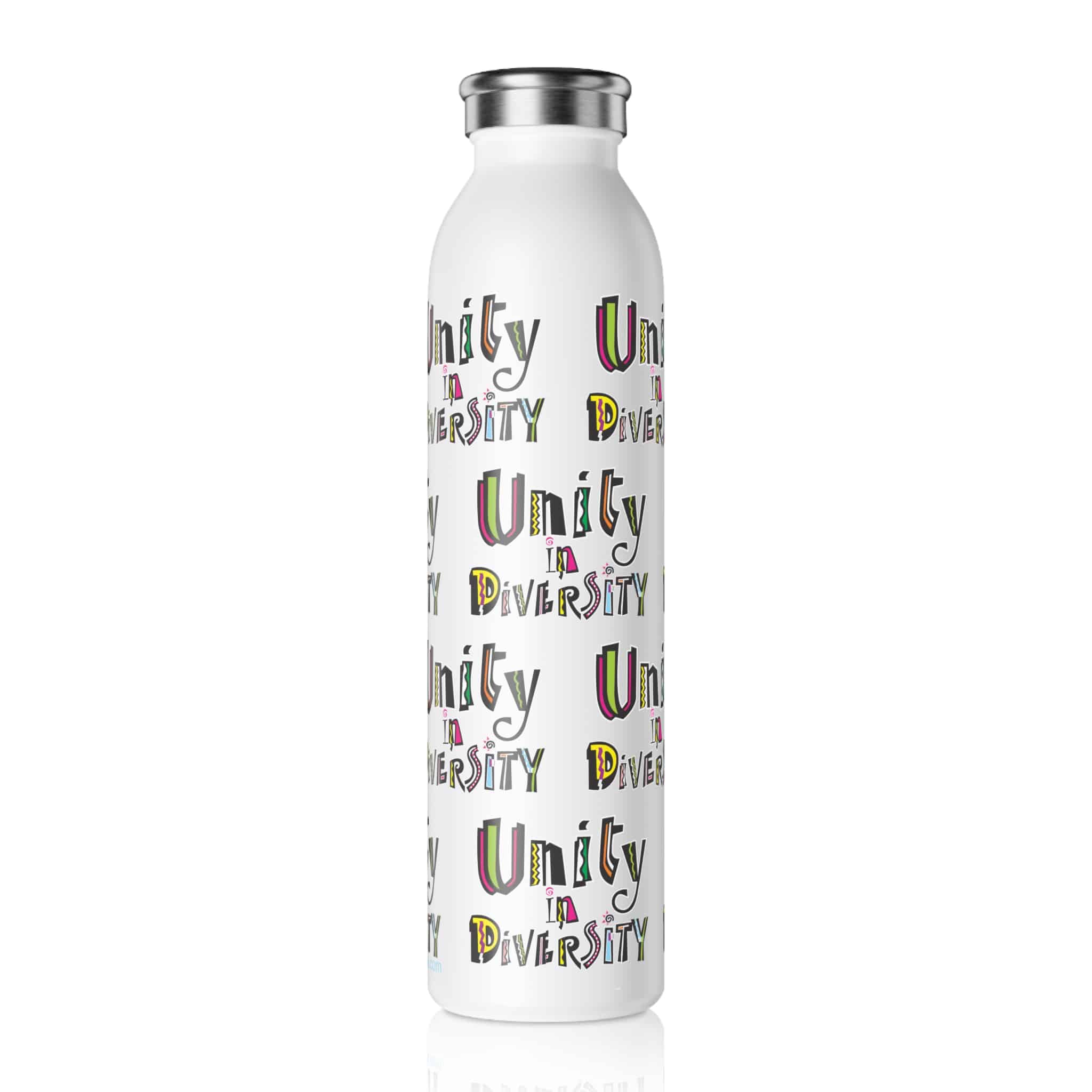 Bright, friendly colors and a positive message will make this your new favorite bottle. Wherever you take it, people will know that you welcome people from all backgrounds, and enjoy unique companions.