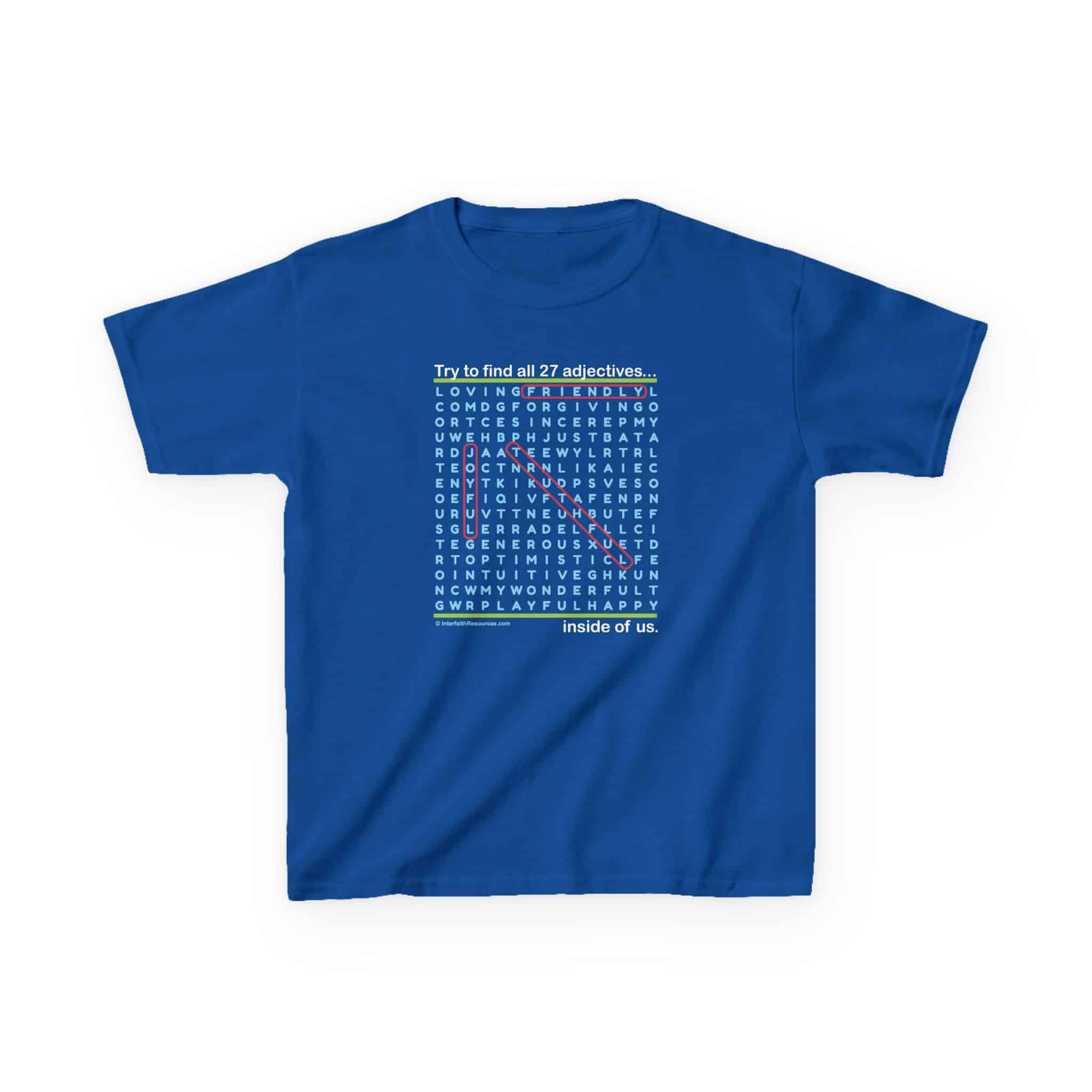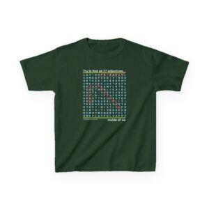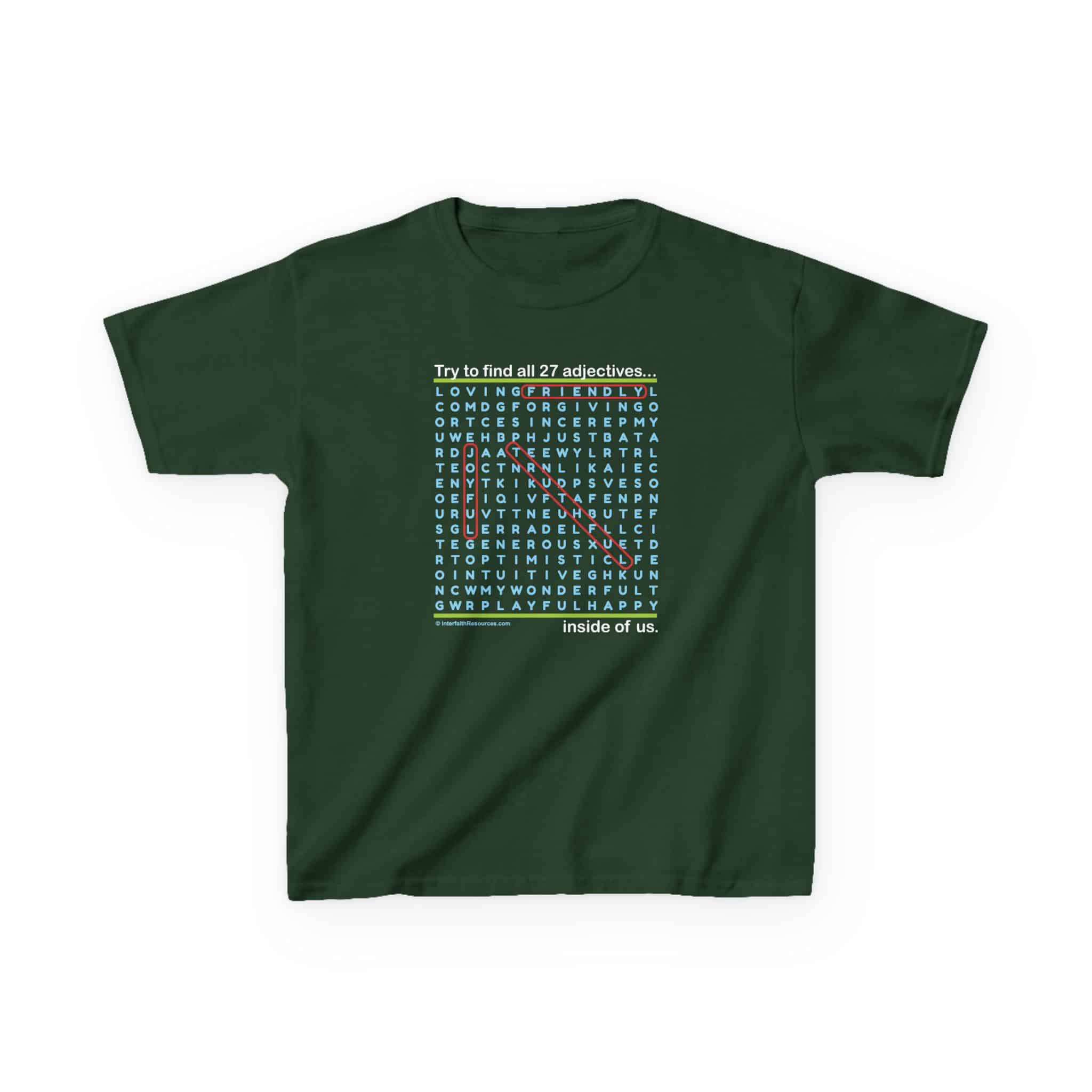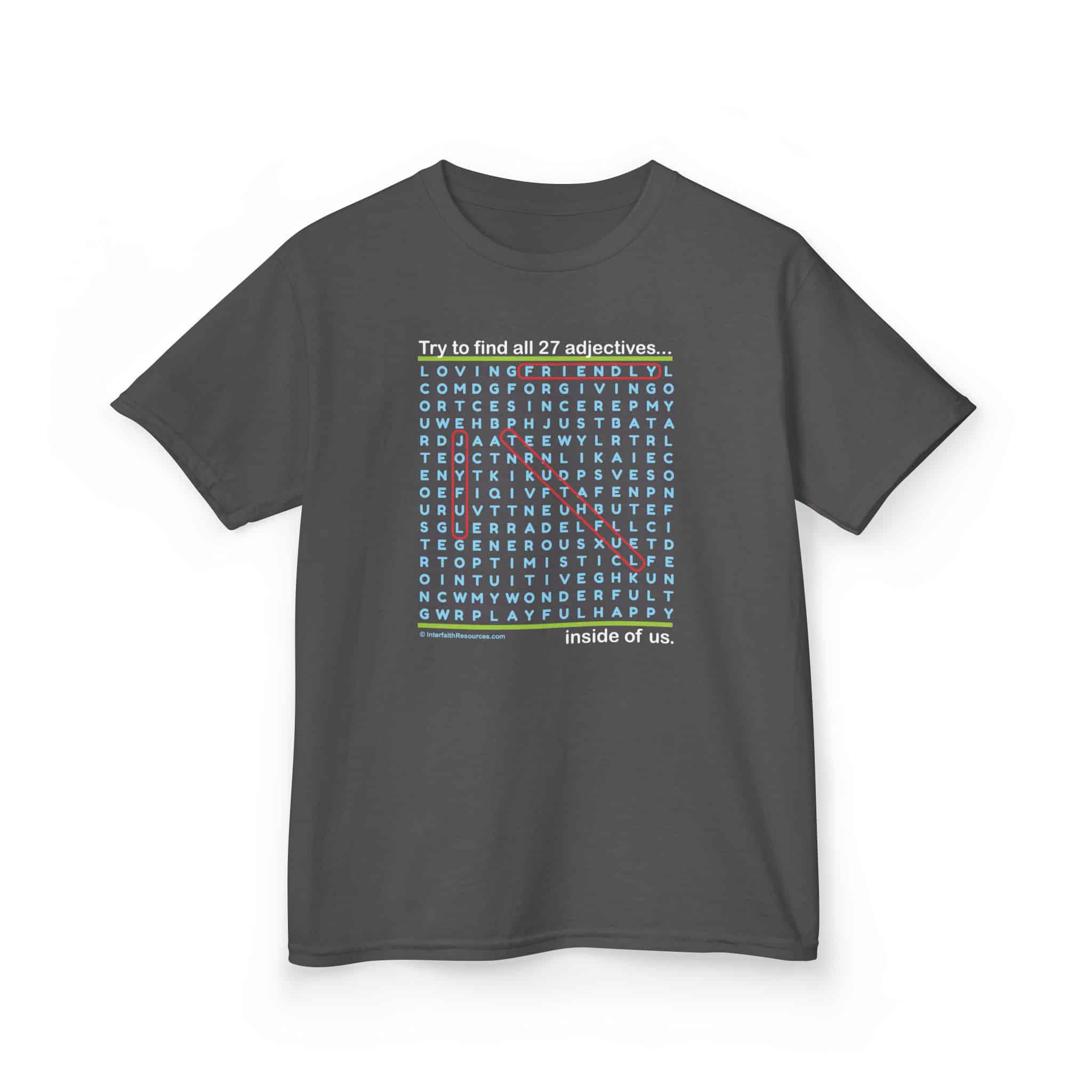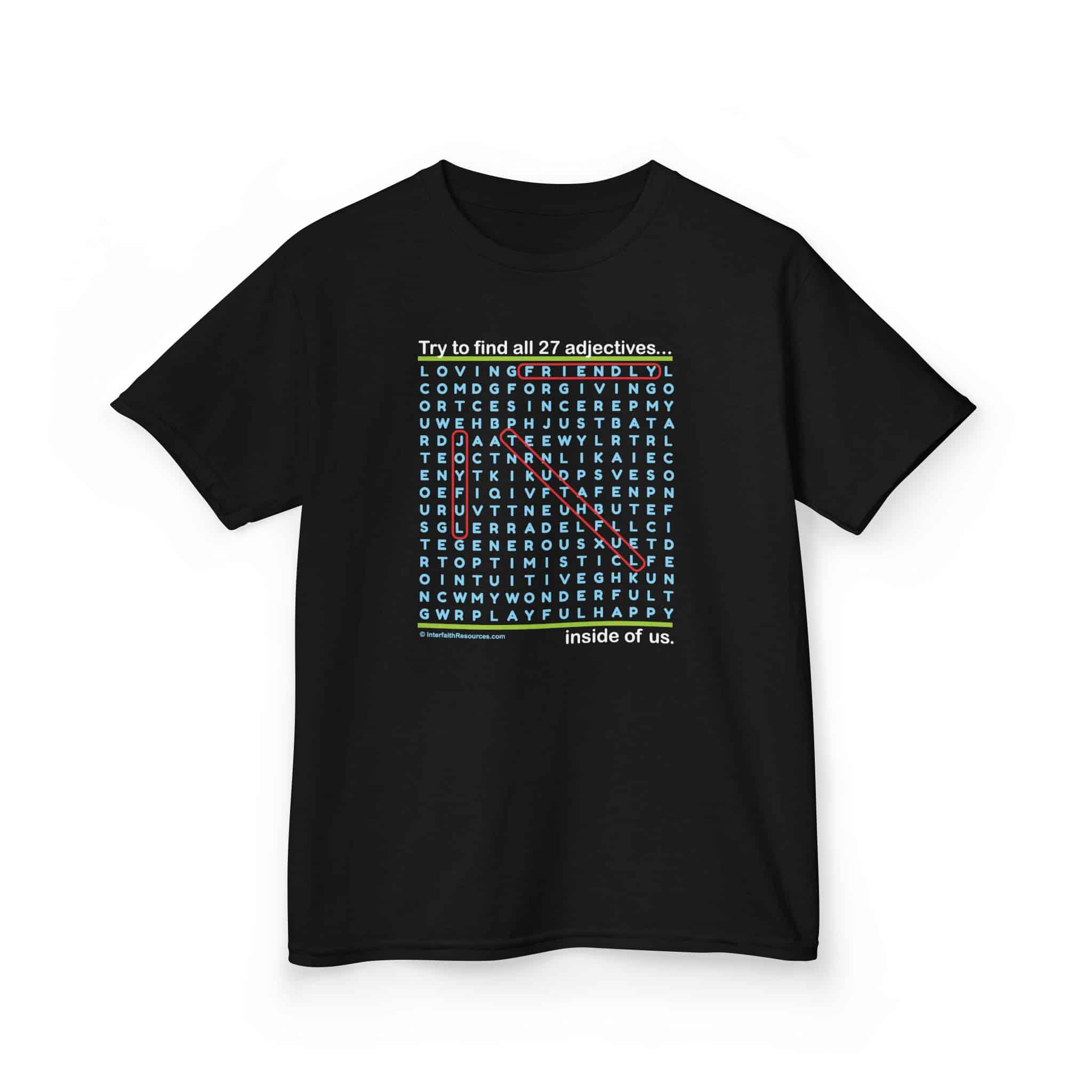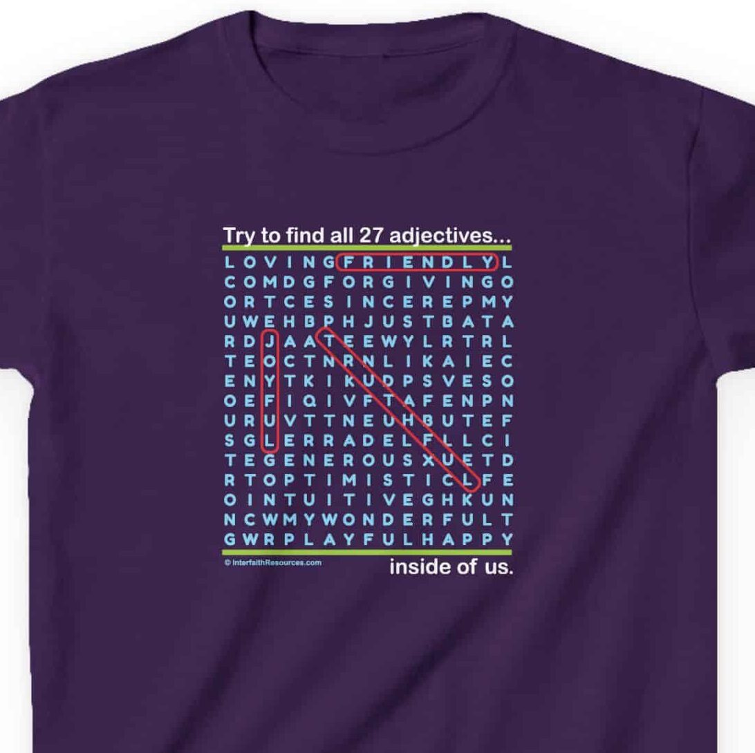 Word Searches are fun to do, and this one comes with an added message – all of the positive words on this shirt can also be found inside the person wearing and the person reading the shirt!